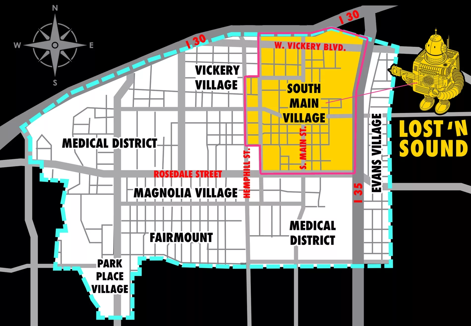 • Lost ‘N Sound aims to support the Near Southside’s South Main Village business and property owners. The creation of Lost ‘N Sound as a South Main Village signature event offers the potential to draw large crowds and bolster patronage. Lost ‘N Sound is built upon the district’s existing culture of small business ownership, arts investment, diversity, and community.
