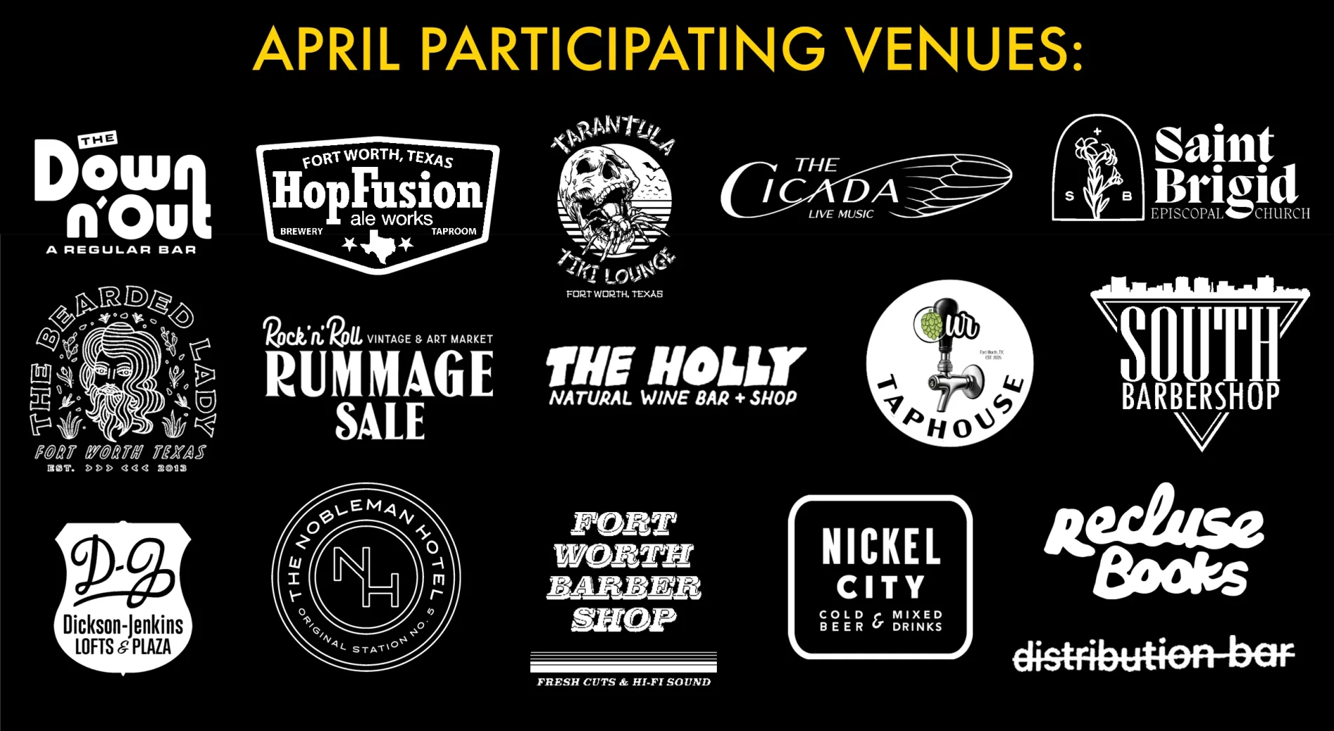 So what are we asking for specifically? Be generous when and where you can – remember, these venues are all offering free admission to see your performance so the old model of cover fees will not be their way to recoup expenses at Lost ‘N Sound. Please be considerate of this when pricing your performance. Encourage other musicians to apply and participate – we hope that the music community will see this event as their own, one where businesses are rolling out the red carpet to host music for the benefit of the musician and Fort Worth’s music scene at-large. Your partnership is appreciated to help get this new local music showcase started. Please contribute however you can.