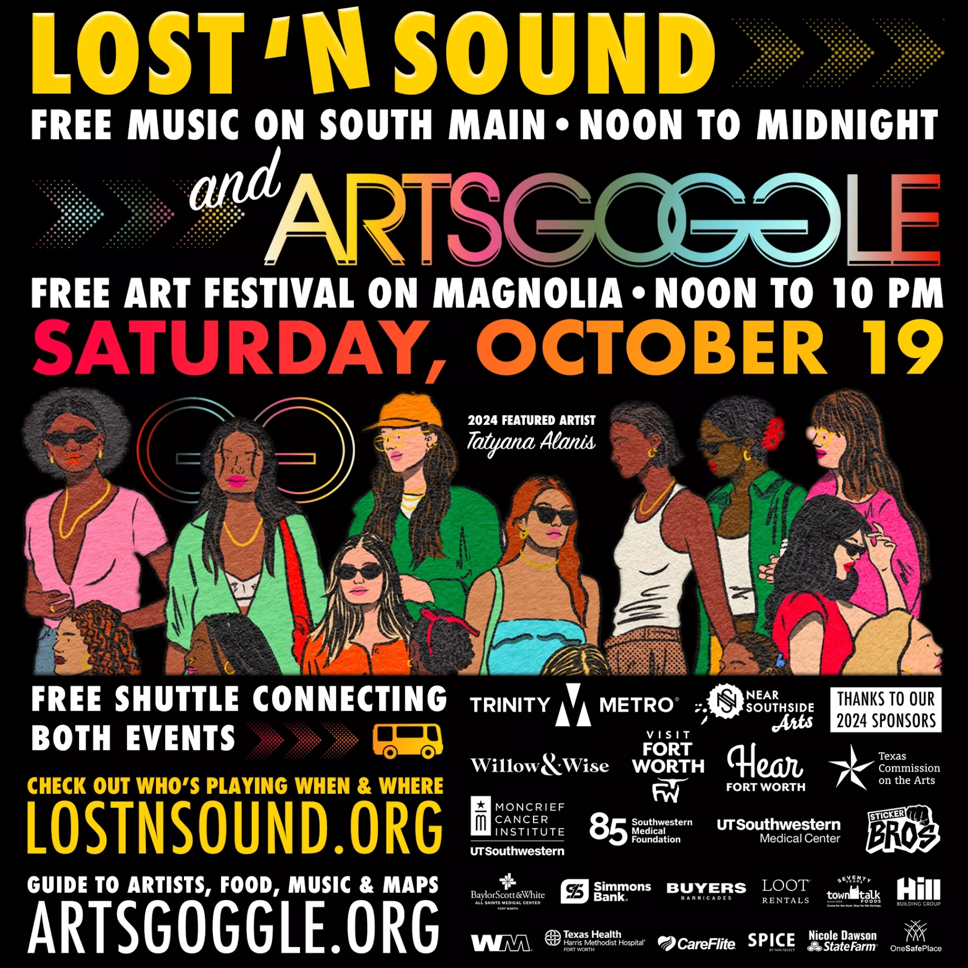 Our final edition of the 2024 Lost 'N Sound season ended with a finale like no other. Partnering with the Near Southside's largest and best-known festival of the year, ArtsGoggle, the two events shared a single day and marketing effort. While Magnolia Avenue focused on visual artists, South Main Village used Lost 'N Sound as an embrace of musical artists! Bands filled dozens of venues along the two mile stretch connecting the festivals and moving the crowd of over 88,000 attendees throughout both urban villages.